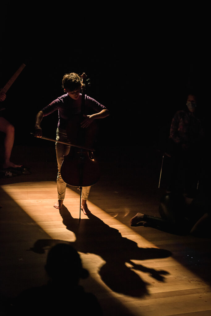Ursina Bösch’s künstlerische und vermittlerische Praxis bewegt sich an der Schnittstelle von Tanz, Bewegung, Musik und Sprache. Sie ist geprägt von Dialog – sowohl im Entstehungsprozess als auch in der Performance selbst.