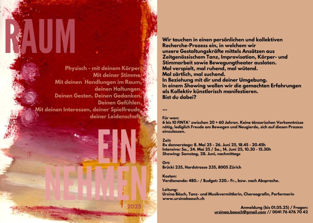 • Workshop-Projekt Künstlerischer Community Dance: jeweils Mittwochabend 18.30-21h in Zürich